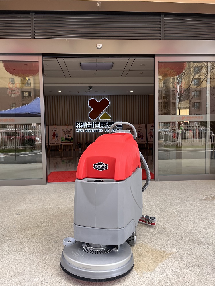 配套名稱:御衛仕手推式洗地機DX3走入江蘇某大型商超的停車場